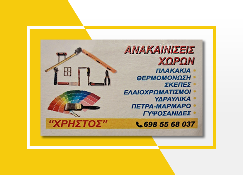 Η επιχείρηση του κ. Arian Hoxha δραστηριοποιείται στον χώρο των οικοδομικών έργων και των ανακαινίσεων με έδρα το Ωραιόκαστρο, εξυπηρετώντας όλη τη Θεσσαλονίκη.